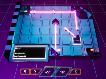 Controls: Click on glowing tiles to select them then click on either the Reflector (90 degrees) or Redirector (45 degrees) to place the objects. With a tile selected and an object placed, click the rotation buttons to rotate the object 45 degrees at a time or click the delete button to remove the object.
