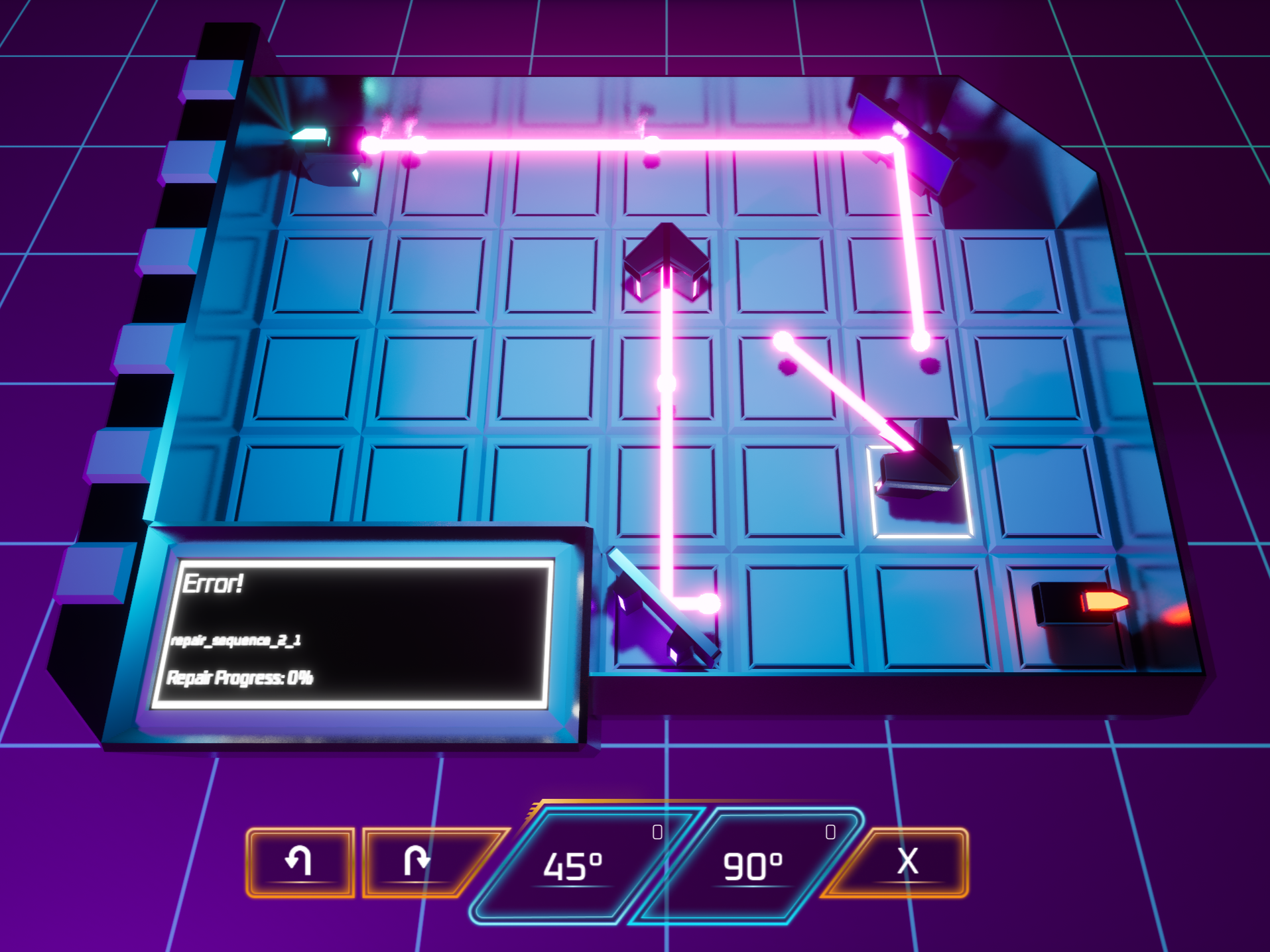 WaveBreak is a 3D synthwave puzzle game that tasks players with repairing Sound Drives. Players must guide the sound wave to its destination to repair the songs using a Reflector or Redirector.